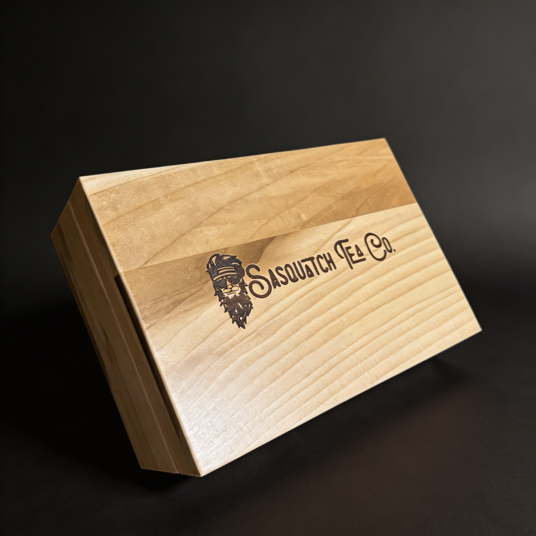 Pull out your white gloves for this one. This is a completely custom made poplar gift box with 30 individually wrapped sachets of your choosing. Whether you're buying it for a friend or keeping it all for yourself this is the perfect place to store such a prized possession like Sasquatch Tea!